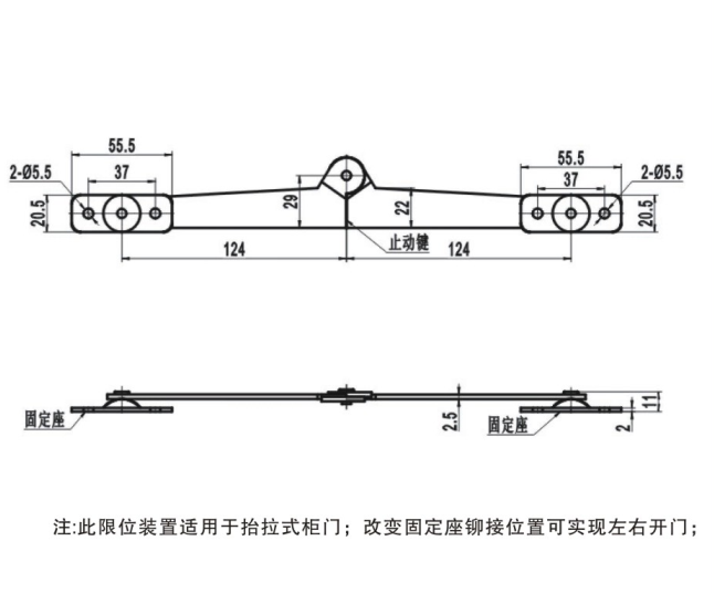 結構功能:安裝方便;有左右開門之分;適用大型柜門限位用;