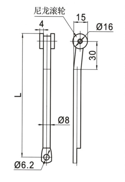 鍍鋅鋼帶圓孔連桿,帶白色PA滾輪