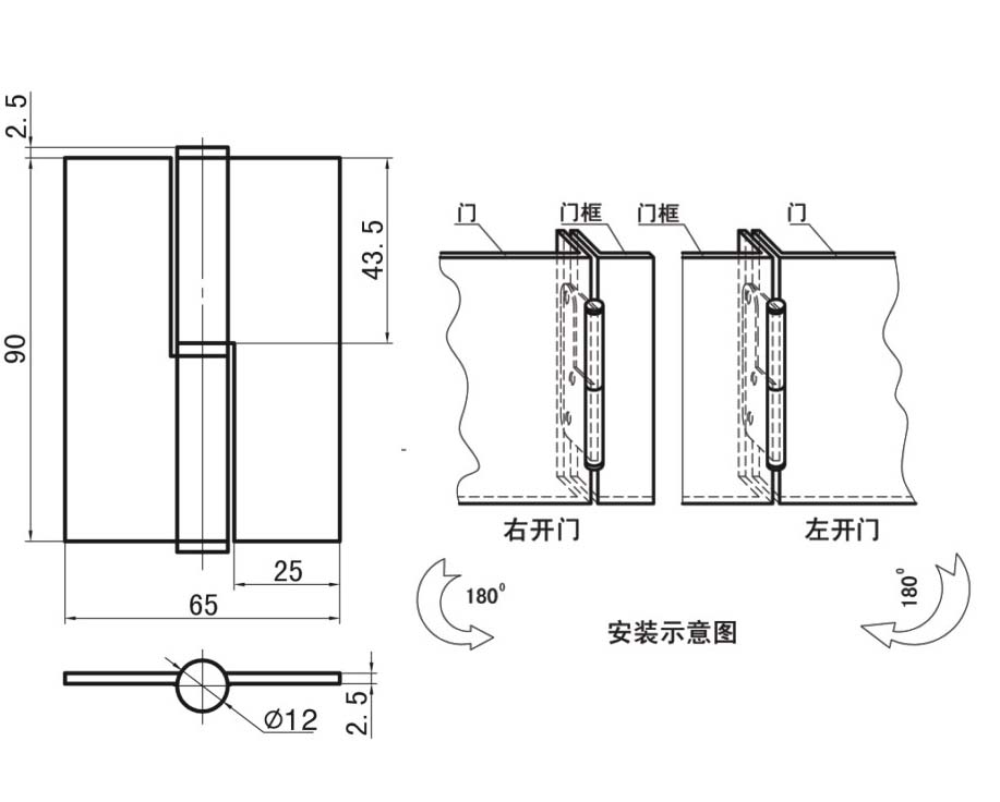 材質及表面處理:鍍鋅鋼鉸鏈,有左右區分。
